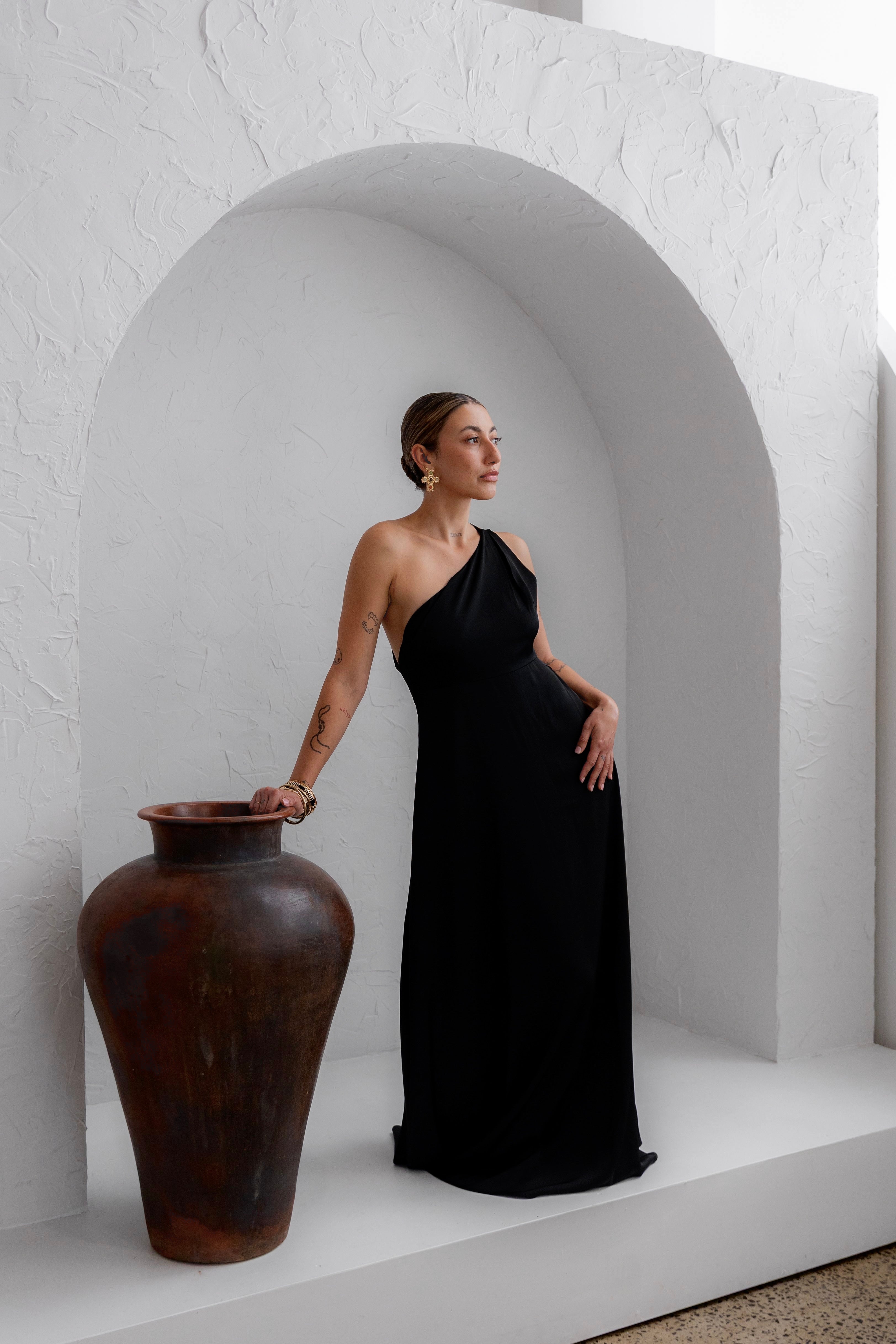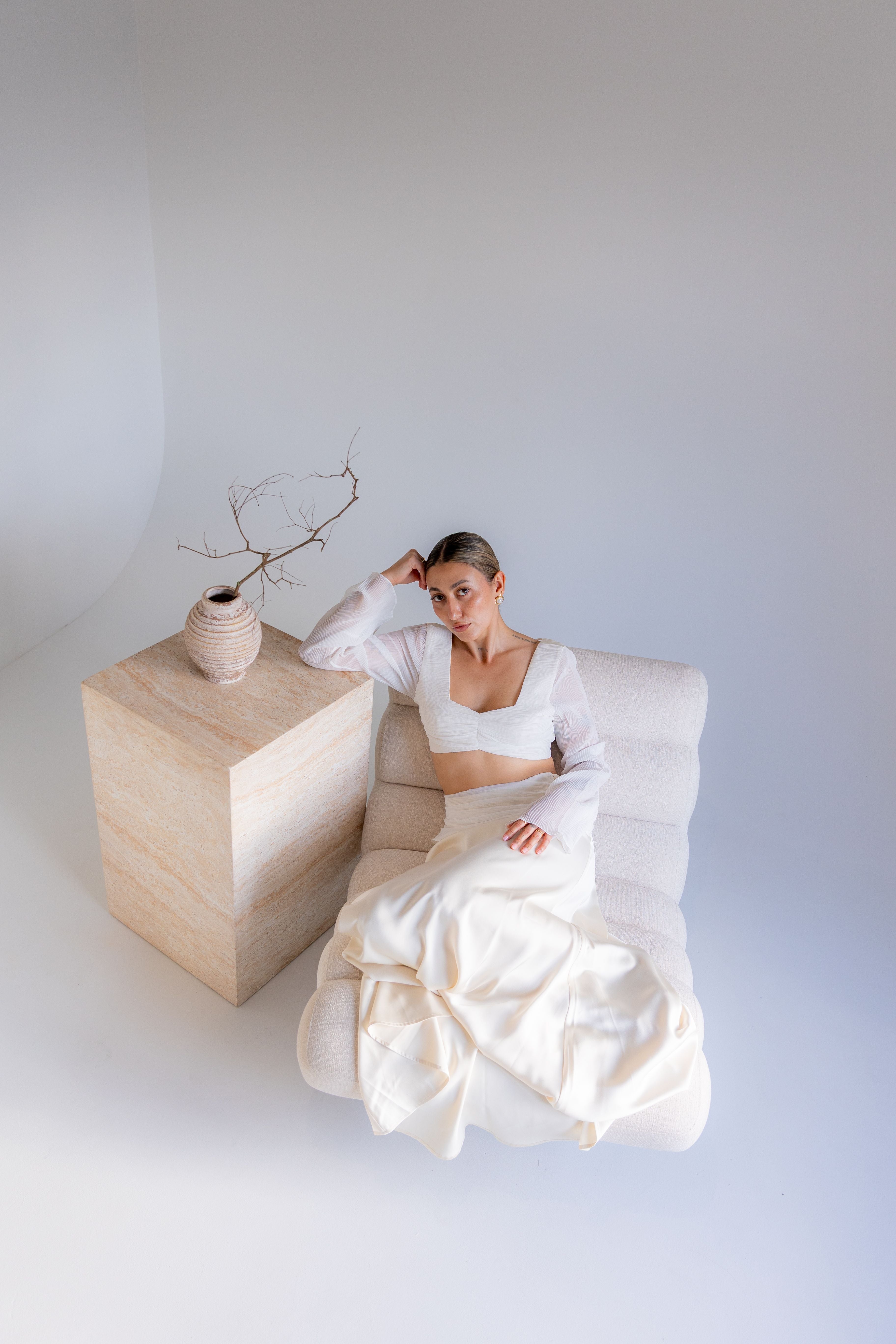 A curated edit of feminine silhouettes and understated statements. Draped in soft structure, open backs, and romantic detailing. Designed for the modern muse who honours the beauty in simplicity.